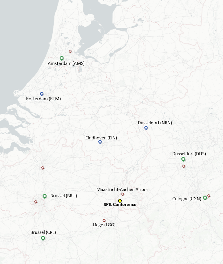 Maastricht is in the centre of Europe with many options for flight. Visit: Airline airport map